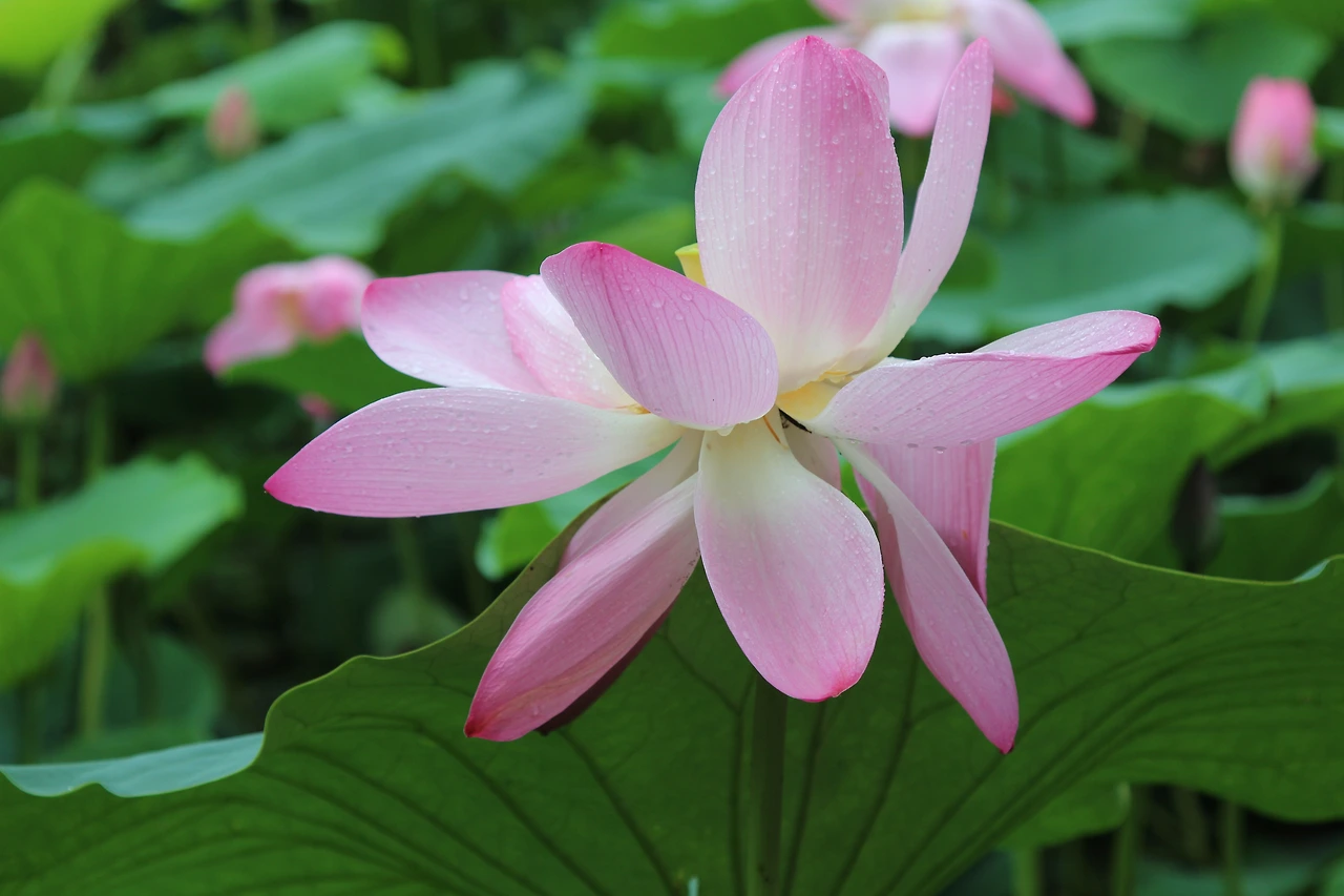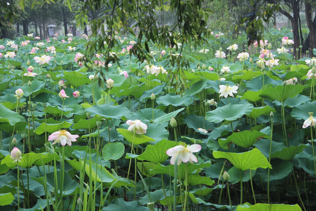 연꽃, 2021.7.21 세미원 - 피지 않은 봉우리 상태부터 오무려져 있는 함담, 활짝 핀 부용이 어우러져 있다.