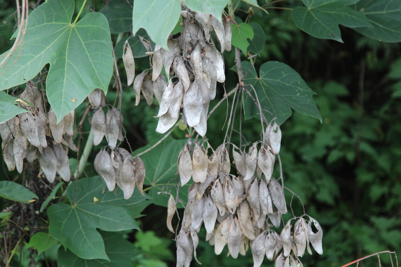 (좌) 벽오동 - 2021.7.8 논산, (우) 부용 -2022.8.,12 제주도 - 벽오동과 부용은 잎에 큰 결각이 있는 모습이 비슷하다.