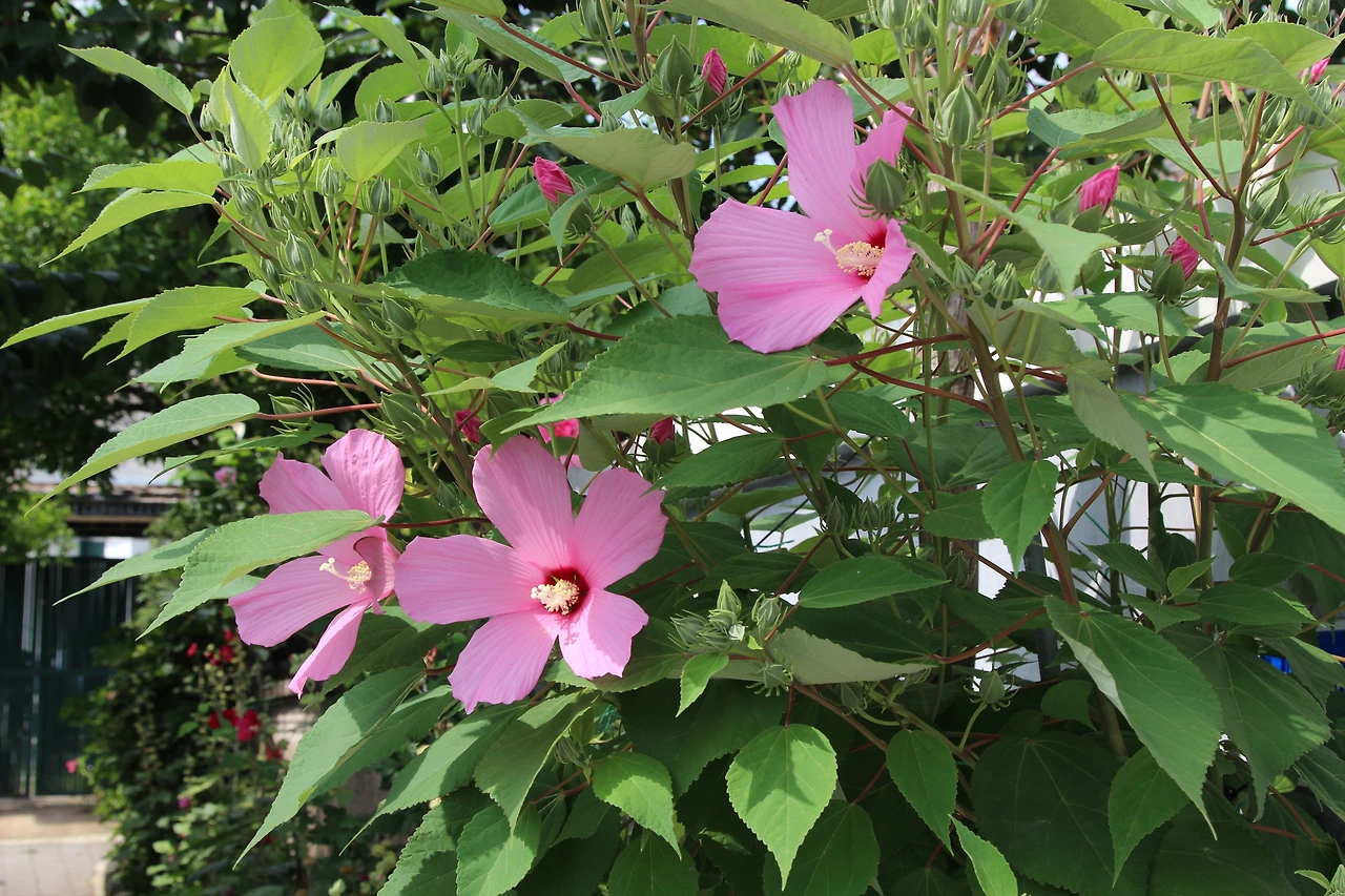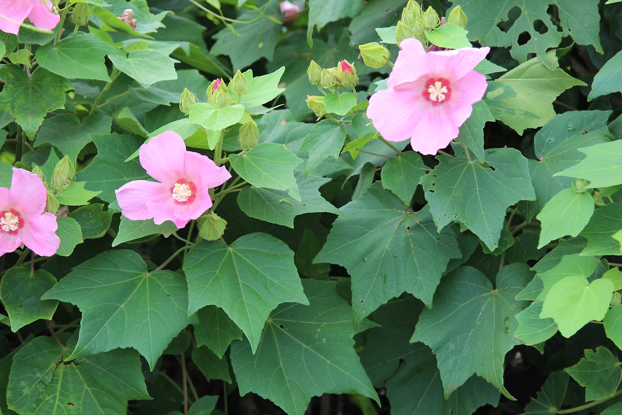 부용芙蓉은 대개 연꽃을 뜻하지만, 현재 우리가 부용이라는 부르는 무궁화속 꽃일 수도 있다. 부용에 관심을 기울이면서, 무궁화속의 부용에도 초본과 목본이 있음을 알게 되었다. 중부지방에서 주로 만날 수 있는 초본은 미국 원산의 미국부용++으로 불리고, 중국 원산의 목본 부용(Hibiscus mutabilis L.)은 주로 제주도에서 자란다는 사실도 알게 되었다. 작년 여름에는 강남대로를 걷다가 연분홍 어여쁜 미국부용을 만나기도 했지만 목본 부용은 중부지방에서는 좀처럼 만날 수 없었다. 지난 7월 초 영월 여행에서 정말 화사하게 핀 미국부용을 감상한 후에는 남쪽 지방에만 자란다는 목본 부용이 더욱 보고 싶어졌다.