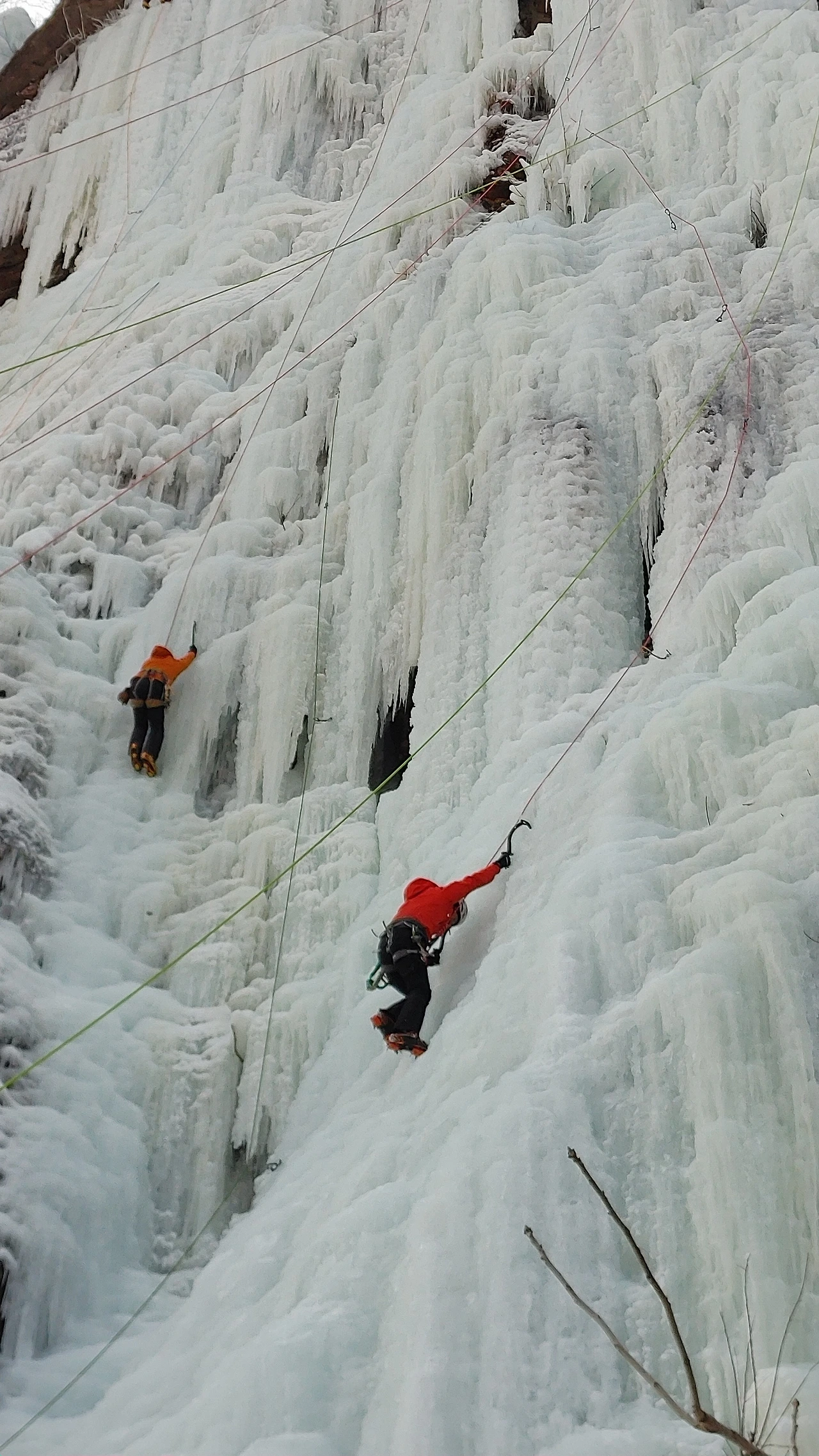 어쨌든 그 뒤로 HS형은 연맹 선배와 왼쪽의 고난도 구간을 하러 가고 나는 재학생 훈련을 위해 나갔다. 첫 빙벽임에도 곧잘 하는 것이 가능성이 있어 보였다. 절반 정도를 오르고 하강.