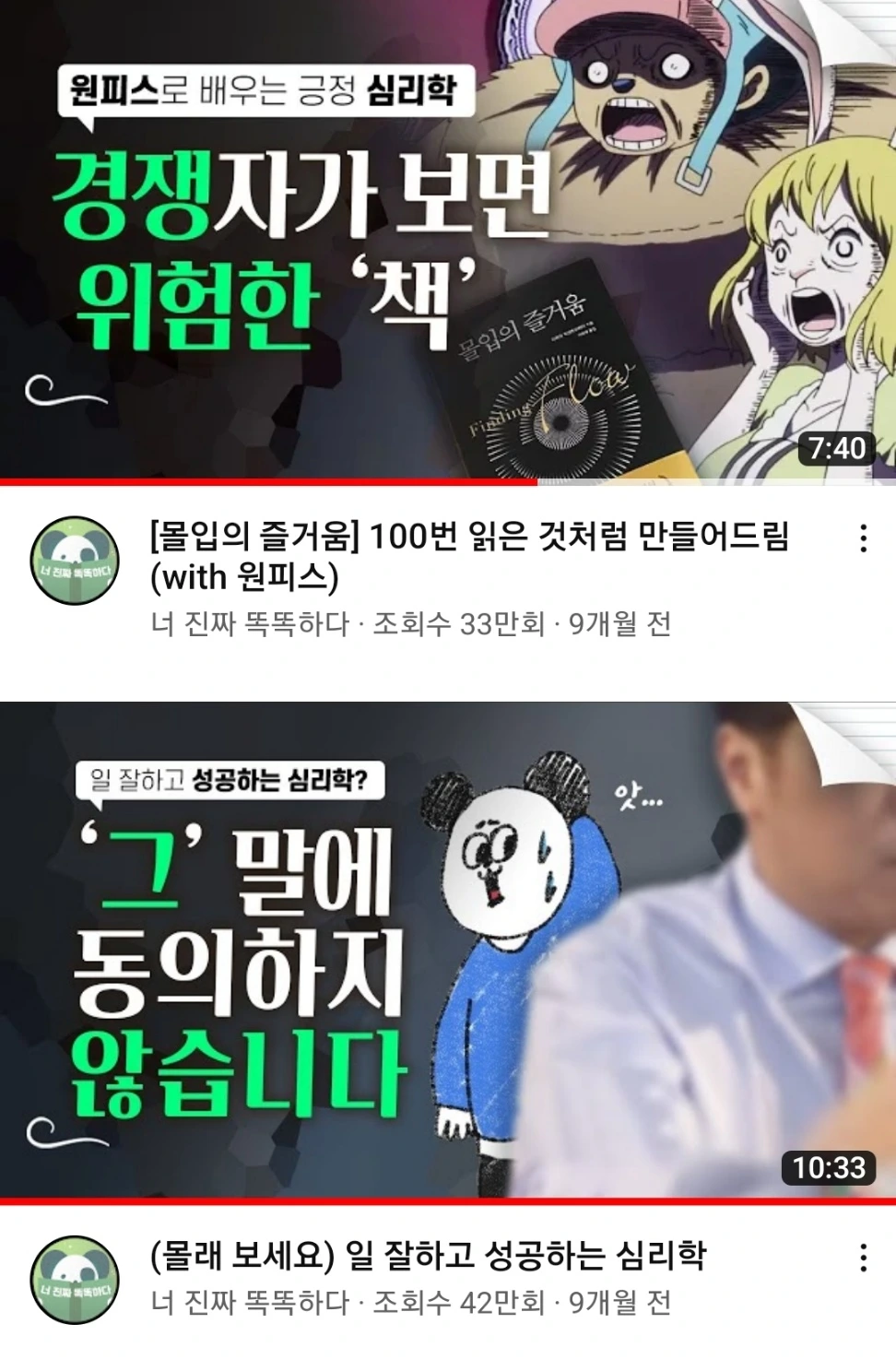 -영상을 보고 책까지 구매하여 읽었는데, 특히 '몰입의 즐거움'에는 큰 감명을 받아서 조만간 서평으로도 올릴까 합니다.