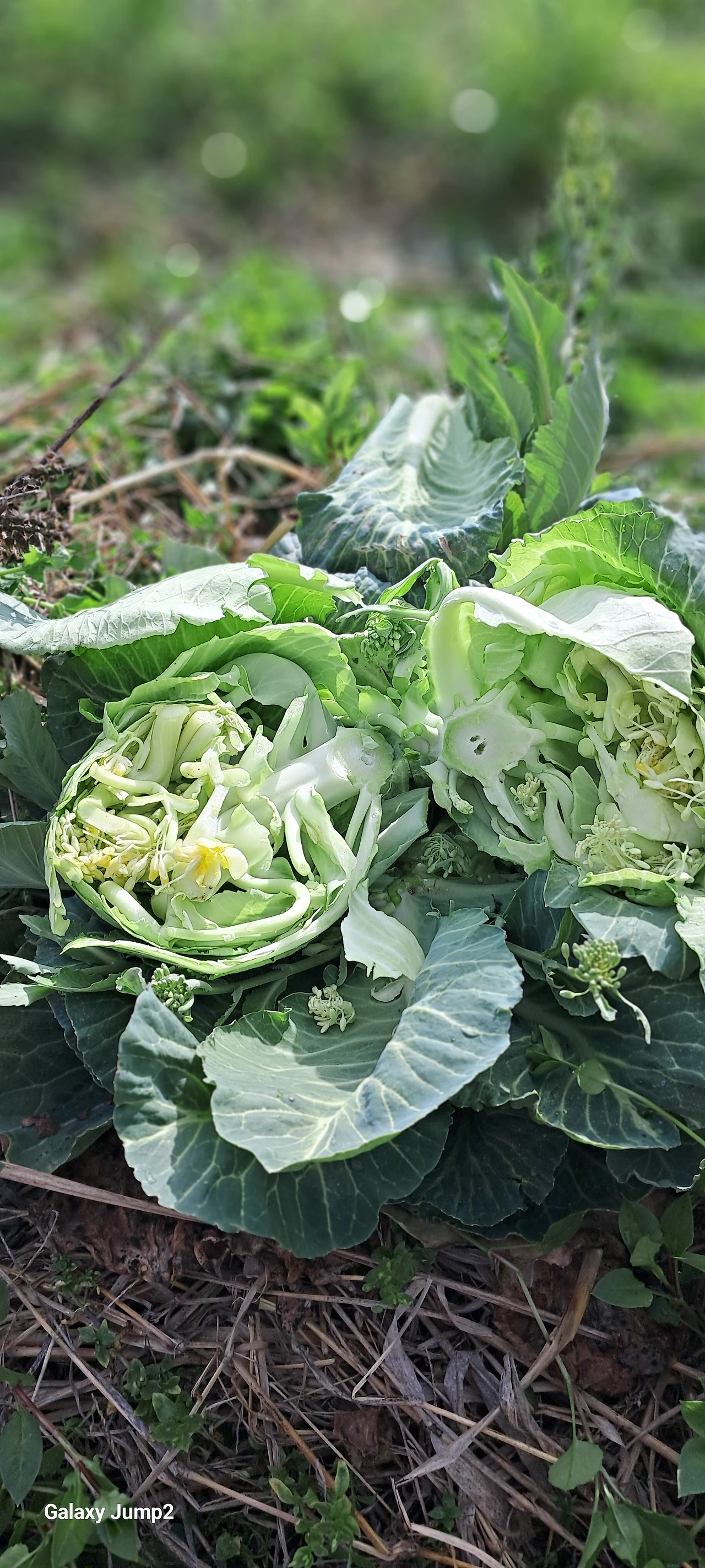 겨울을 지난 양배추를 잘라보니 꽃이 피어 있었는데 먹어보니 부드럽고 아삭거린다. 색다른 양배추맛이다.