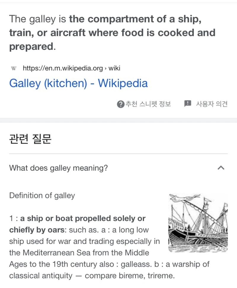비행기 주방을 갤리라고 한다. 구글 찾아보니 꼭 비행기뿐만 아니라 기차, 배에 있는 음식 준비하는 컴파트먼트를 다 갤리라고 하네요 요건 몰랐네!
