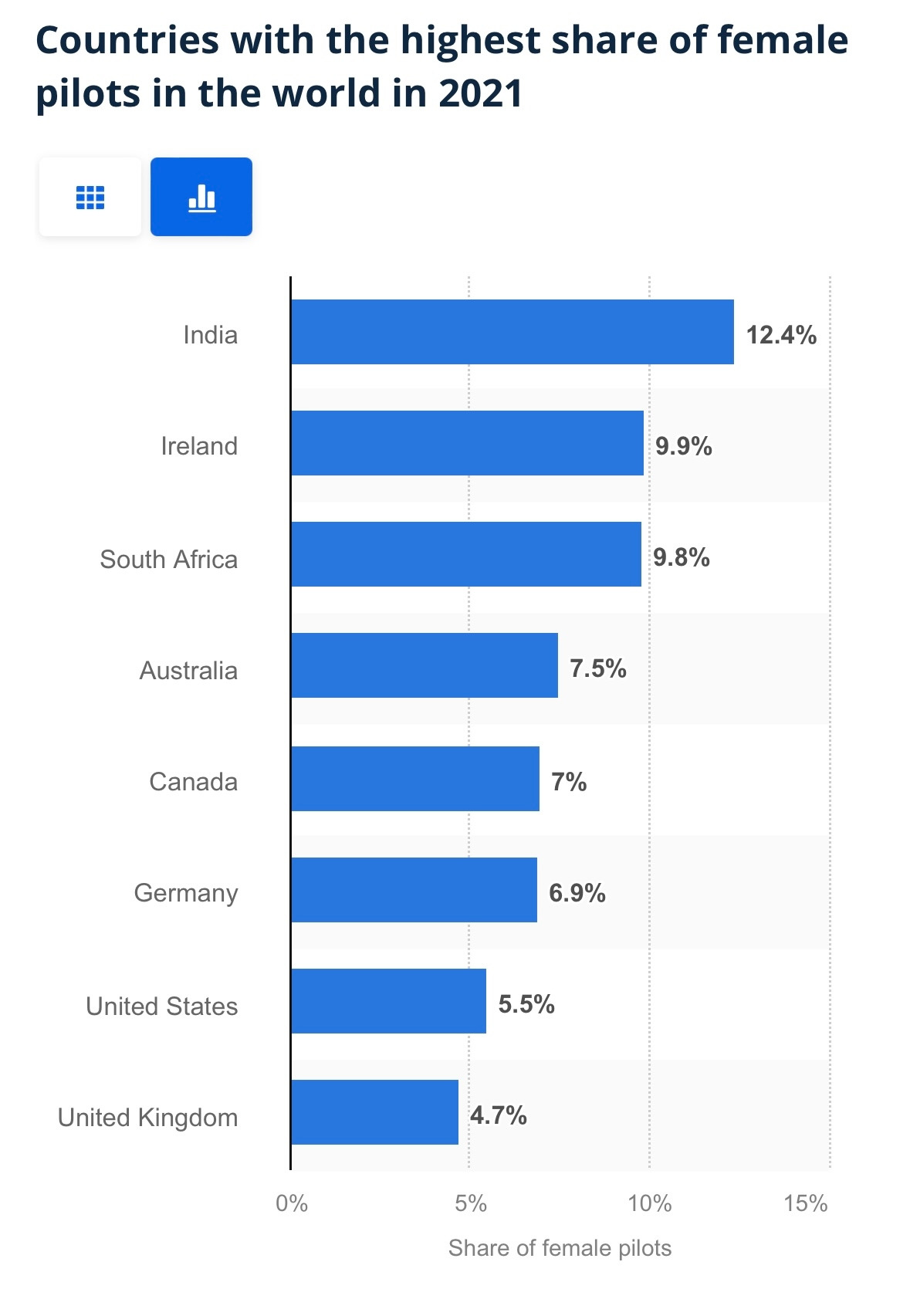 여성 조종사가 제일 많은 회사는 놀랍게도 인도 항공사인 에어 인디아. 아일랜드, 남아공, 호주가 그 뒤를 따르고 있다. 우리 회사 여자 기장들과 이 주제로 몇 번 얘기해봤는데 우리 회사는 전체 파일럿의 5-10%가량이 여자고, 매년 늘어나는 추세라고! 전 세계적인 비율로 보면 4-6% 가 여자 기장이고 숫자 자체는 증가하고 있으나 여전히 초라한 편이라고 하는 기사들을 찾아볼 수 있다.