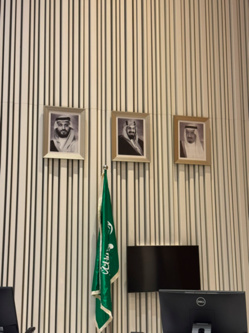 다른 나라랑 사뭇 다른 호텔 리셉션 분위기, 국기랑 사우디 왕? 들의 사진 액자가 인상적이었다.