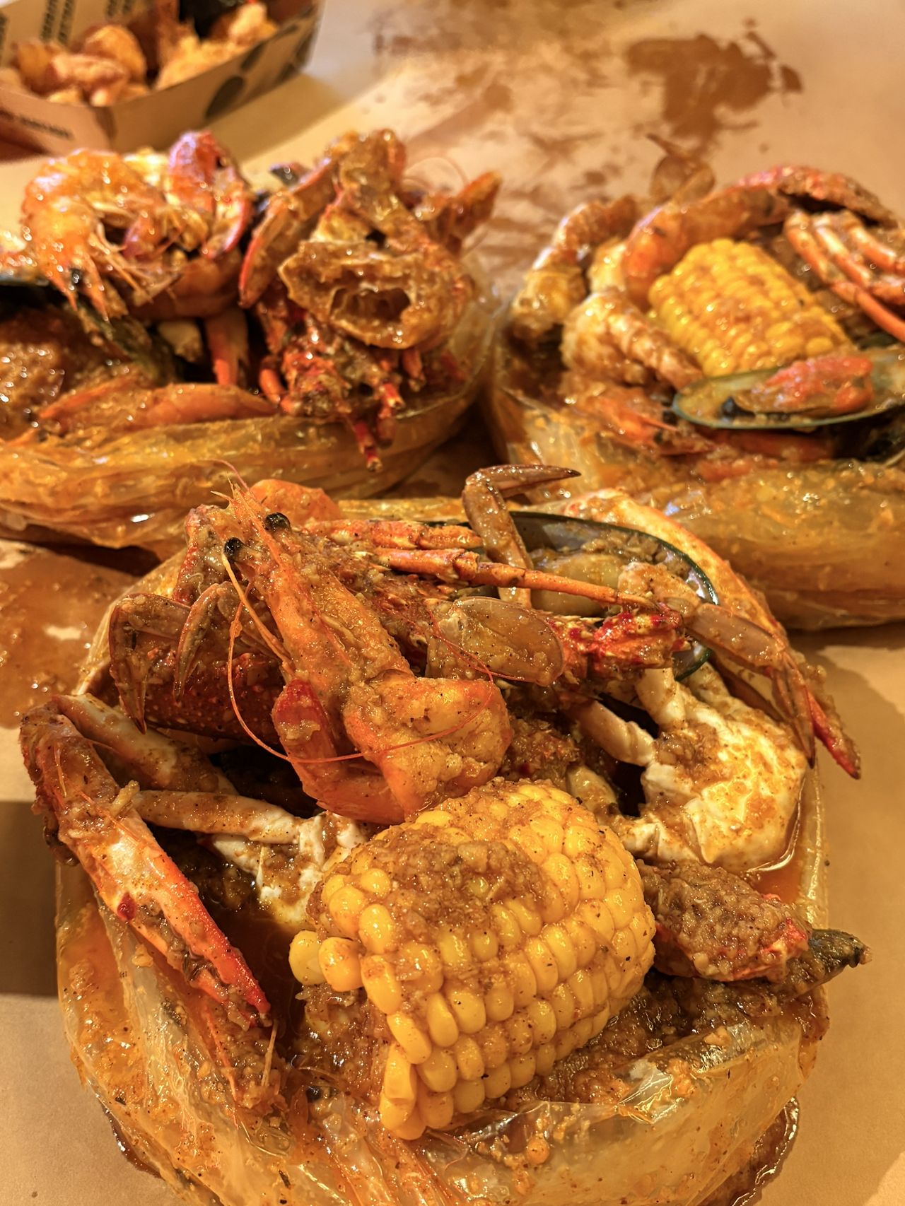 이른 저녁 먹으러 드디어!!! 새우집에 갔다. 비행 결정되자마자 시푸드 레스토랑 검색해서 저장해 놓고 여기 갈 순간만 기다려왔다 히히 Seafood boil라고 하나요 아무튼 케이준 소스에 버무린 해산물 파는 곳!!!