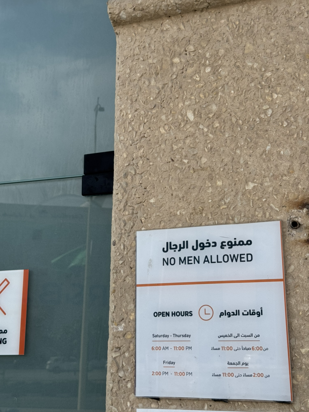 브런치 집은 팬시하고 예쁜 가게였고 대부분 30-40 나이 정도 대의 사우디 레이디들이 손님이었다. 애들 학교 라이드 해주고 온 느낌? 대부분 밝은 색 아바야 입고 화장도 이쁘게 하시고 음식 나오면 사진 찍고, 친구랑 셀카 찍고 그러는 게 그냥 전 세계 여성들과 다를 바가 없는 모습이라 신기했다. 여자들은 참 귀여워