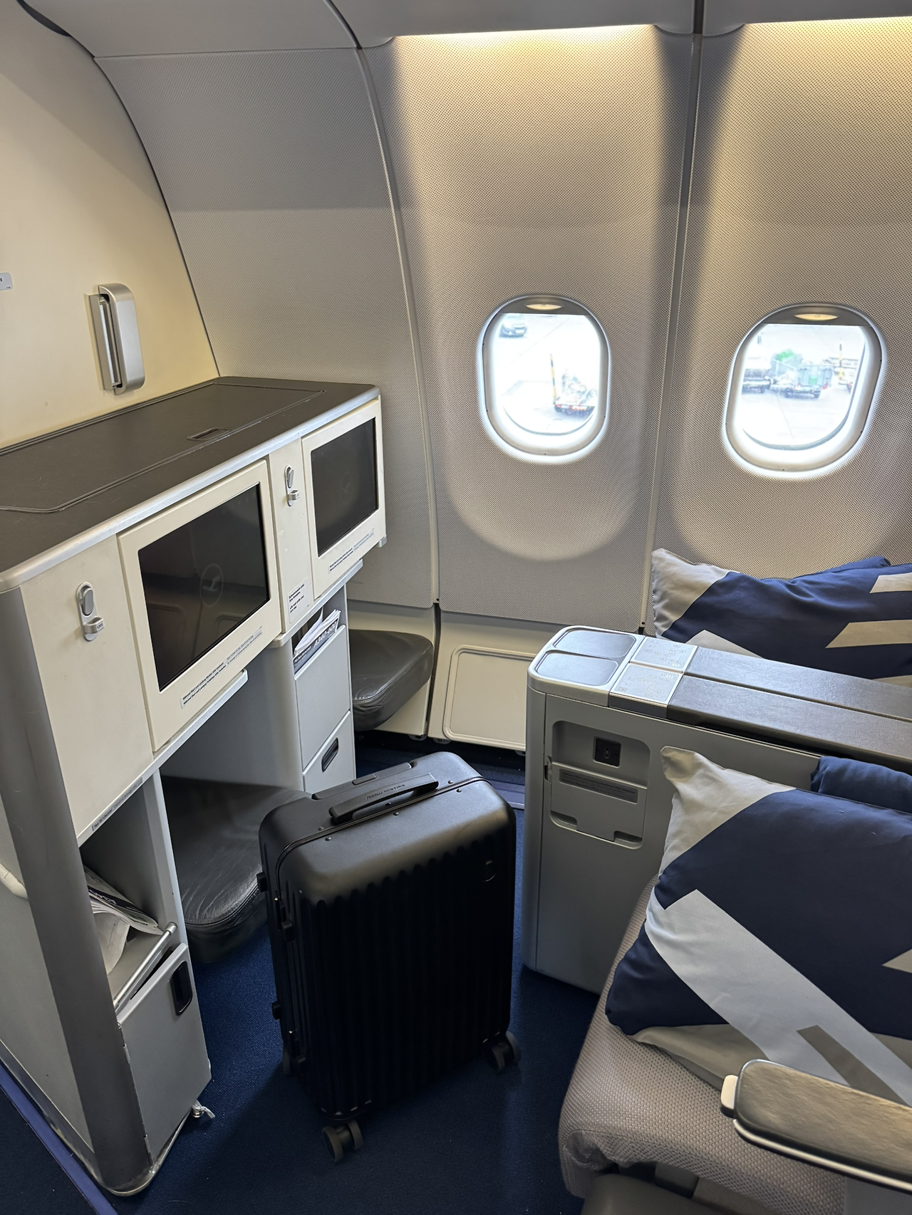 입사 초기에 한참 했던 340 비행기로 갔고요 오늘 나의 포지션 비즈니스 왼쪽!