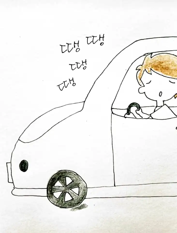 미소를 지으며 우아하게 핸들을 잡고 있는데 어디선가 띵땡띵땡 경고음이 울린다