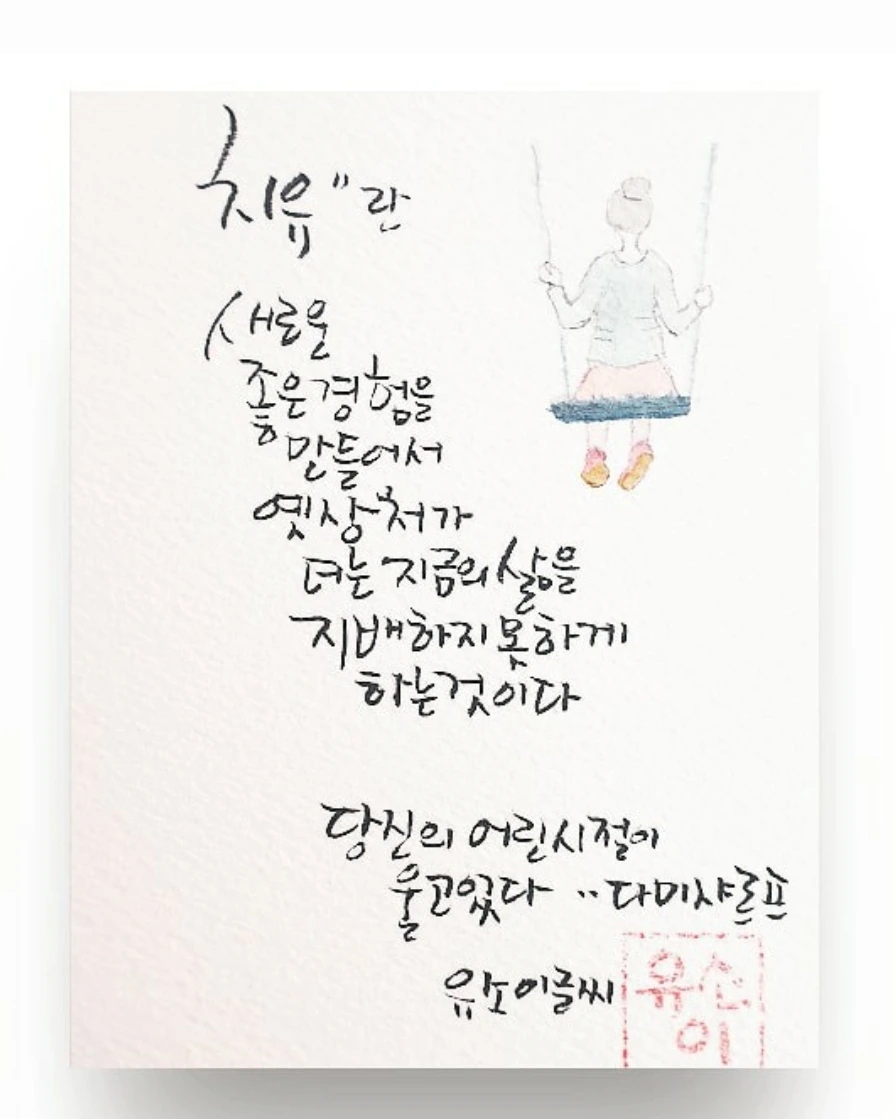 성인이 된 후에도 기껏해야 스물서른의 사회초년병이 뭐 그리 명료한 인생을 만들 수 있었겠나... 실수를 , 시행착오를 실패로 규정지어 놓고 수많은 세월을 마치 감옥에 들어앉은 죄수처럼 살아온 듯싶다