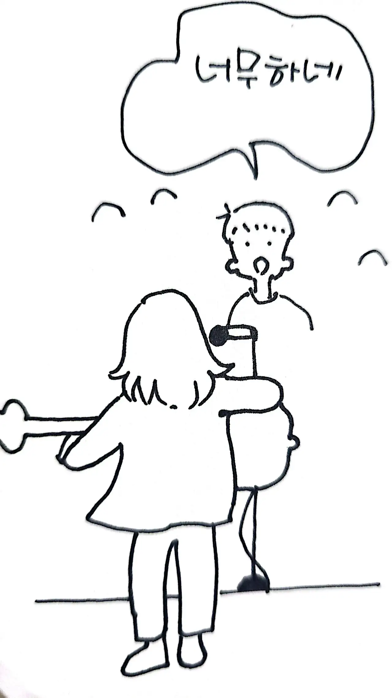 " 전 메모지에 적힌 대로 I've been a way to long을 해드렸는데요 "