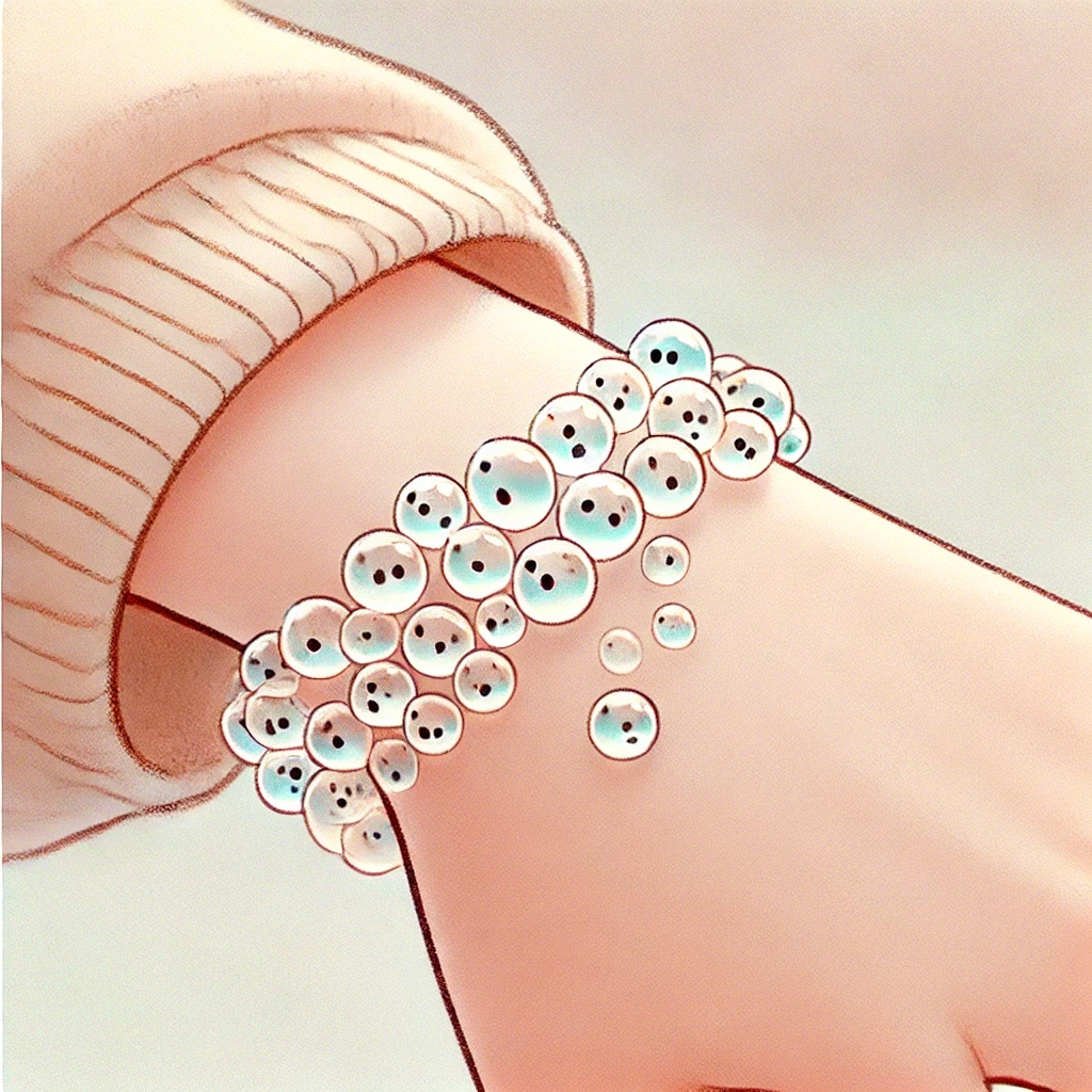 까맣게 박힌 검은 점, 우뭇가사리 같은 물컹한 촉감에 통통한 젤리 팔찌. 긴 것은 팔목에, 짧은 건 손가락에 걸고 우리는 그렇게 치장을 하고 학교로 향했다.