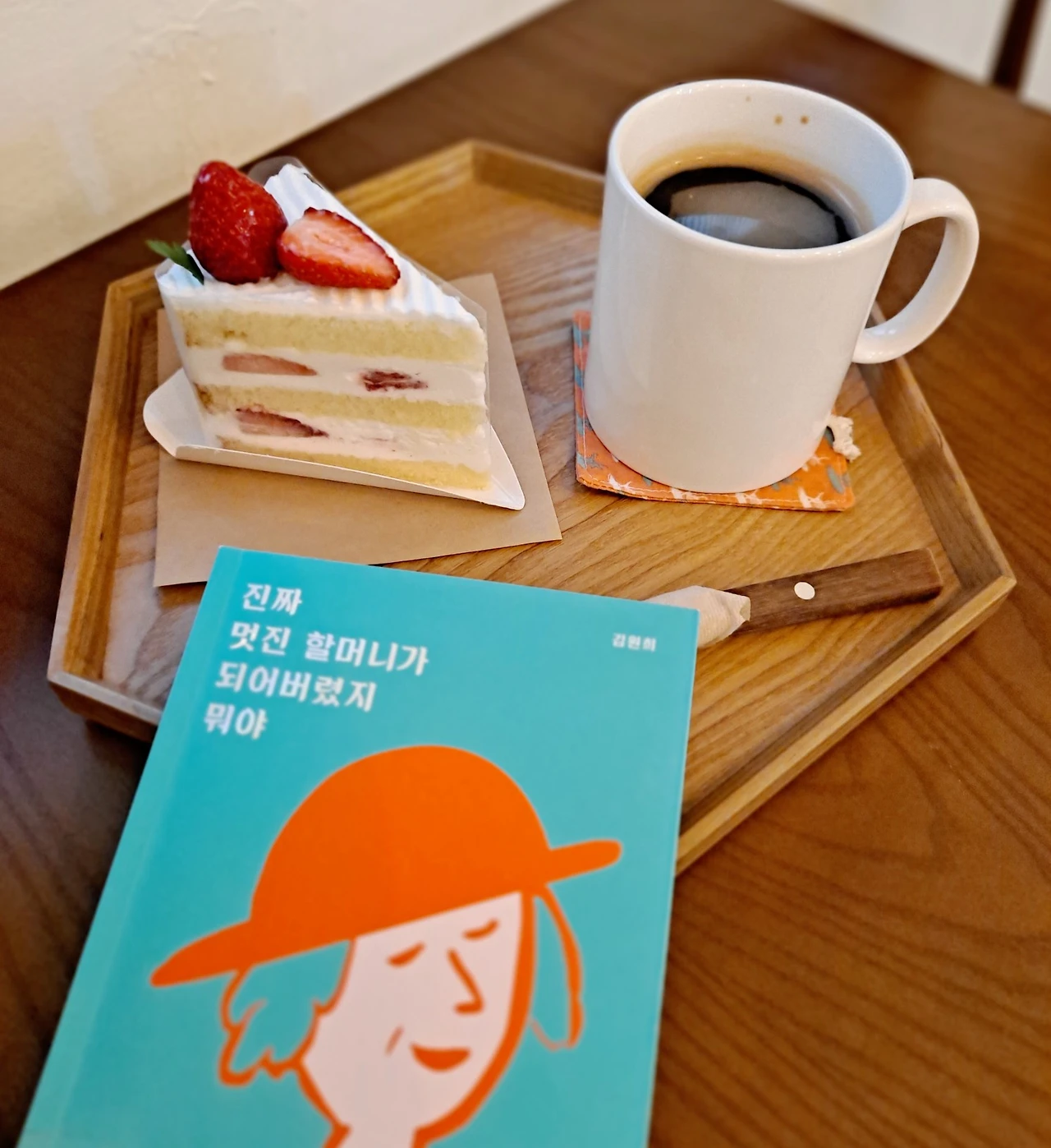 71세 멋진 할머니 이야기가 반갑다. 핸드폰에 30분 타이머를 누르고 목차부터 읽기 시작했다. 지난번 경주 여행 중에 서점에 들렀다가 표지색이 쨍하고 제목이 멋져 사진 찍어두었던 책이다. 지팡이 대신 캐리어를 끈다고 말하는 할머니가 멋지다. 책 표지에 보이는 할머니의 그림에는 여행용 모자에 목걸이를 걸고서 주름치마와 낮은 구두를 신은채 여유 있는 미소를 보인다. 70대 멋쟁이 할머니의 신나는 여행이 궁금해 서둘러 본문을 펼쳤다. 일본, 스위스, 중국 등 러시아 횡단 열차까지 혼자 그리고 같이 20여 개국을 여행 다닌 할머니의 모험을 구경하면서 너무나 신이 났다. 노년의 시선으로 본 세상과 사람들 그리고 넉넉하고 따뜻한 마음들이 여기저기에 나타난다. 건망증과 노년의 느린 적응, 실수까지도 아름답게 보였다. 80여 페이지를 읽고 나니 옆자리에서 조용히 수다를 나누던 엄마들과 2층 다락방을 드나들던 초등학생 아이들은 어느새 자리를 비우고 빈 잔들만 남겨 놓았다.
