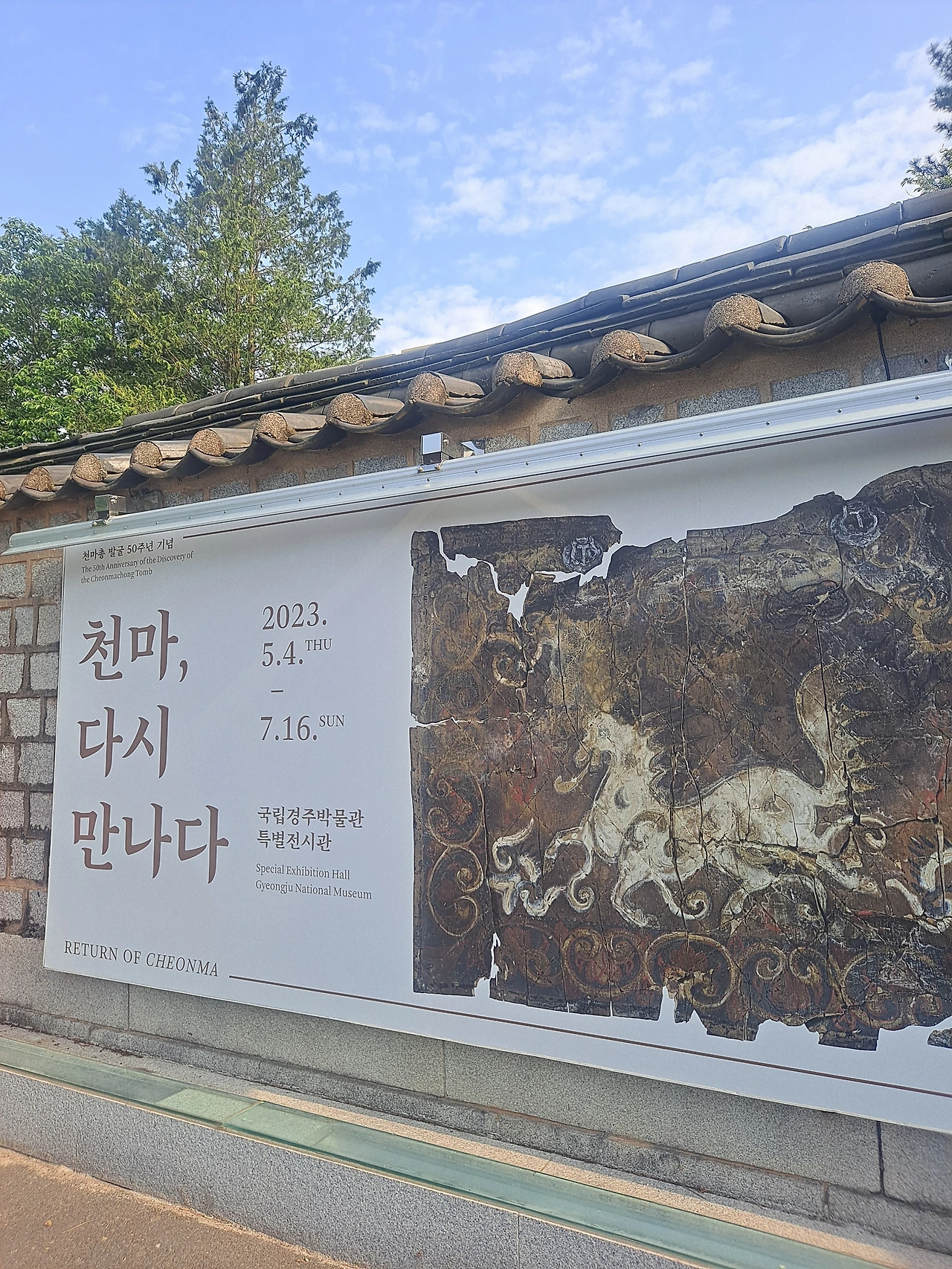대릉원에서는 무덤을 개방한 천마총이 있다. 역사학자들은 지증왕릉으로 추정하고 있다. 천마총 입구로 들어서면 내부와 전시된 무덤을 살펴볼 수 있다. 천마총에서 발견된 말다래 뒷면에서 하늘을 나는 순백의 말 그림이 발견되었기 때문에 천마총이라는 이름을 얻게 되었다. 말다래는 말 탄 사람의 발에 흙이 묻지 않도록 말안장 양쪽에 매달아 놓은 기구다. 전시해 놓은 돌무지덧널무덤 안에는 발굴된 여러 보물들이 유리벽 안에 놓여있다. 머리맡에는 화려한 금관을 두었고, 허리에는 장식이 화려한 허리띠를, 발에는 거대한 금장식 장화가 놓였다. 당시 해외무역을 증거 해 주는 유리잔과 유리목걸이도 있다. 저 세상에서도 식사를 할 수 있도록 솥단지와 그릇들을 무덤에 넣었다. 사후의 세계에서도 왕과 귀족으로 살도록 많은 보물들이 함께 매장된 내부를 살핀다.