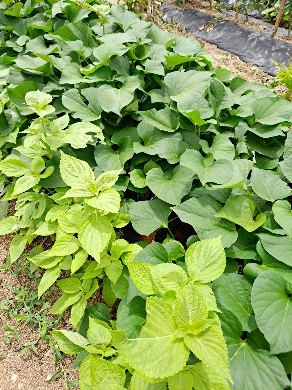 고구마 줄기에 둘러싸인 깻잎