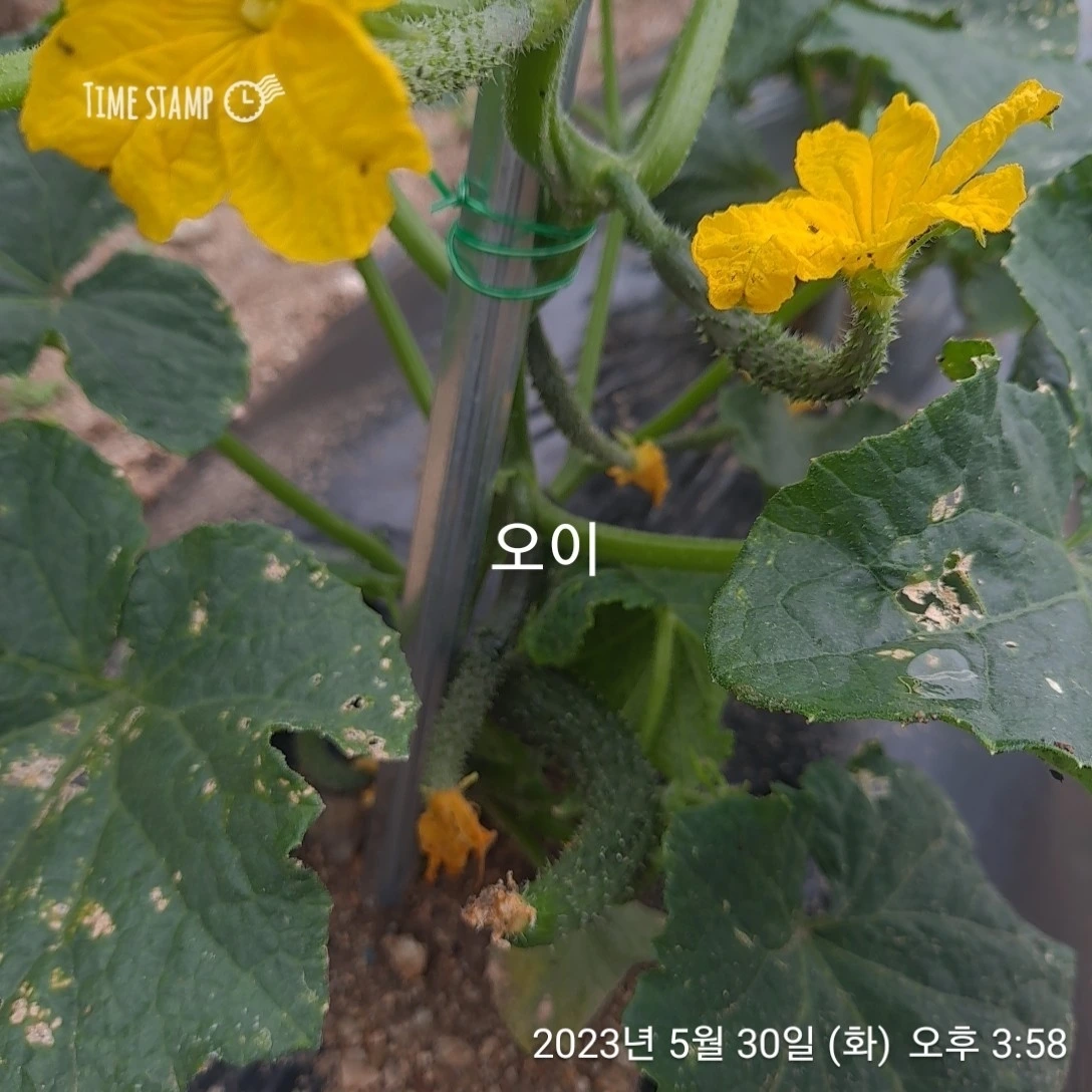 4월 마지막 주에 오이 모종을 심었던 때를 기억한다. 딱 요만한 녀석들이었다. 3개월이라는 시간은 오이 모종이 자라고 꽃 피고 열매 맺을 수 있는 시간인가 보다. 3개월간 작고 귀엽던 오이 모종은 지지대를 타고 오르더니 샛노란 별 모양 꽃을 피워 냈다. 빨랫줄처럼 유연한 줄기를 어디든 척척 얹을 수 있는 것은 가는 넝쿨손 때문이다. 다섯 개의 오이 모종을 위해 쇠로 된 지지대를 세워, 오이 줄기가 타고 자랄 수 있도록 줄을 연결해 주었다. 오이 가지들은 줄을 타고 손을 뻗으며 열매를 주렁주렁 맺었다.