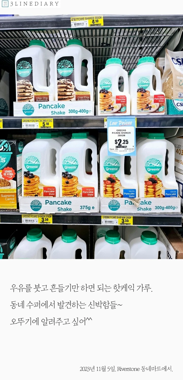 우유만 부어 흔들기만 하면 되는 핫케잌 가루!