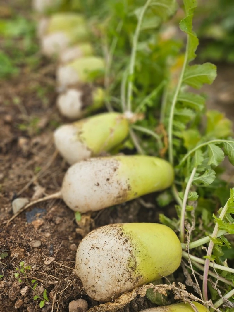 하얗고 단단한 무는 아이스박스에 담았다.
