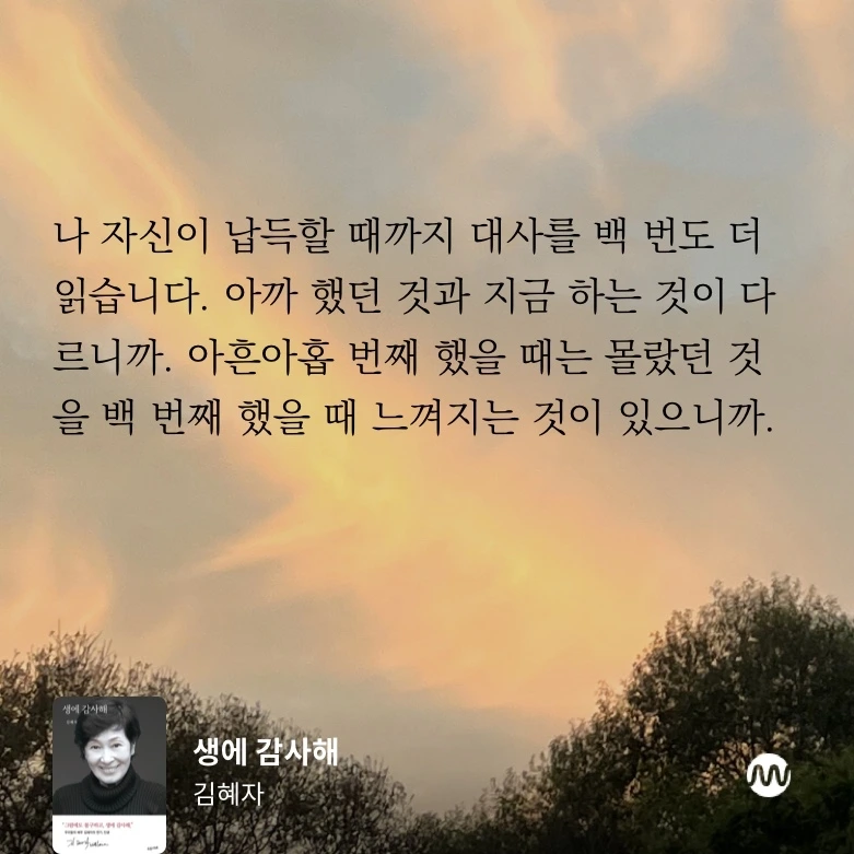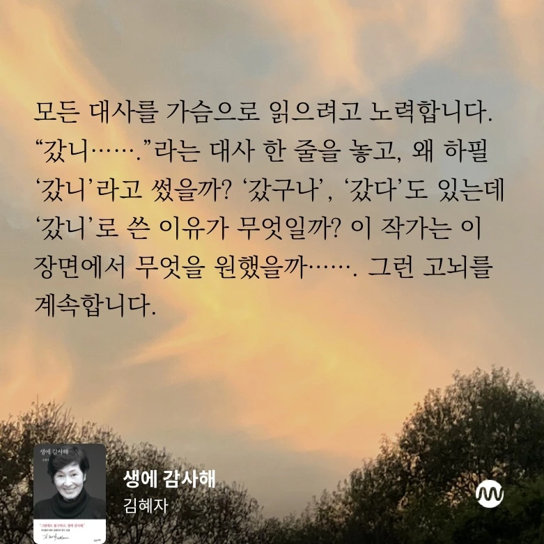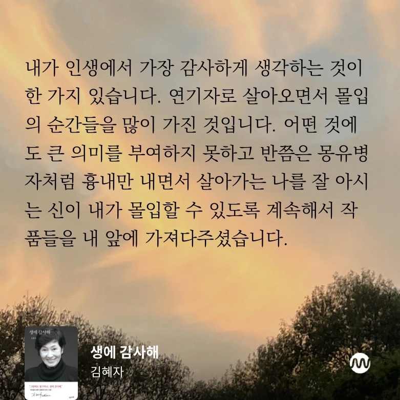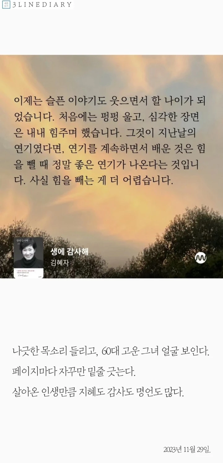 김혜자 님 삶, 목소리로 듣는 듯하다.