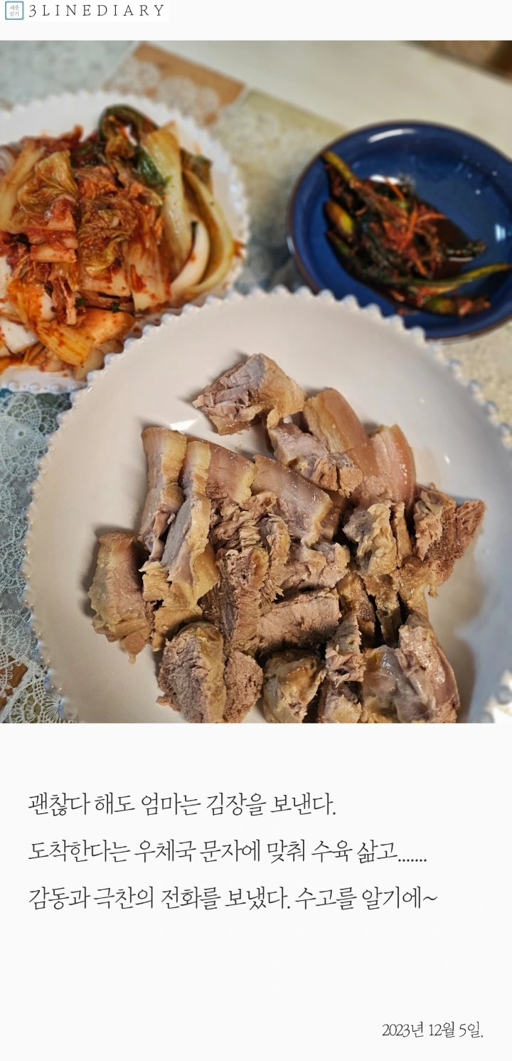 다치면 큰일 난다고 김장하지 말라 부탁했는데, 엄마는 조금만 했노라고 택배를 보냈다.