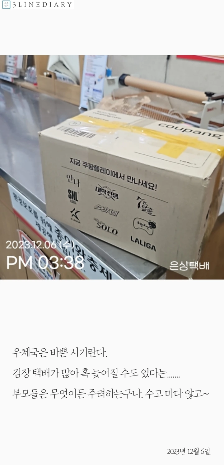 "지금 김장 택배가 많아 혹시 늦을 수도 있어요."