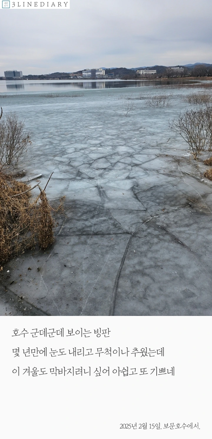응달에는 녹지 않은 눈덩이가 그대로 남아 있다. 흙 묻은 바위처럼 군데군데 앉았다. 햇빛이 덜 닿은 호수 가장자리 곳곳은 얼음처럼 차갑다.