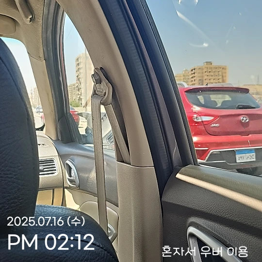 차는 골목을 빠져나와 큰길로 향했다. 에어컨이 꺼진 탓에 창문은 활짝 열려 있다. 기사에게 에어컨을 틀어달라고 요청했지만, 아랍어로 짧은 대답이 돌아왔다. 작동이 안 되는 듯하다. 강한 햇빛에 얼굴과 팔이 익어간다.