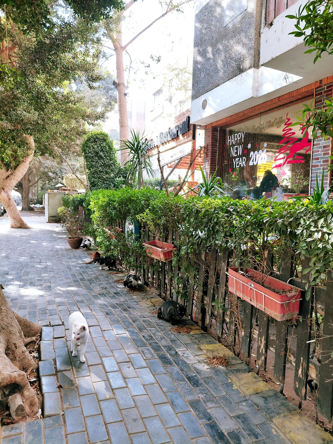 오전 10시 영어수업을 위해 15분쯤 도로변을 걸을 때면 진풍경이 펼쳐진다. 가끔은 지각할 지경인데도 고양이 식사 사진을 한 장씩 남긴다. 커피와 견과류를 파는 고급 식품 가게 넓은 마당에서 열리는 열 마리 고양이들의 단체 급식.