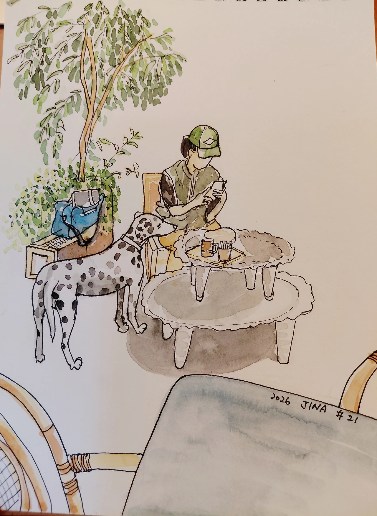 천천히 주변을 바라보면서 스케치북을 채울 의미 있는 하루를 기어이 찾아내고야 만다. 따뜻한 라테도, 푸른 야자수도 그 위에 얹힌다. 때로는 먼지 가득한 자동차와 그 위를 덮은 고양이도 등장하지만 말이다. 오늘도 나는 무언가를 그리려 주변을 둘러보고 하루를 떠올리는 중이다.