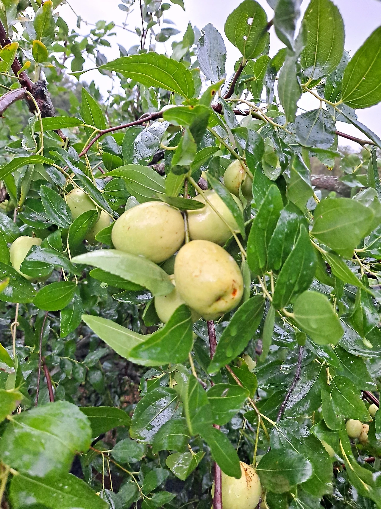 시댁 잔디밭에 주차 후 가장 먼저 살펴보는 곳은 아버지의 화단이다. 맨 앞에 서서 길게 가지를 늘어뜨린 대추나무는 올해도 주렁주렁 탐스런 대추알을 많이도 맺었다. 한 알씩 아래로 떨어지는 대추들을 받아주는 보호망이 넓게 버티고 있다. 다리가 불편해졌지만 부지런한 시아버지는 여전히 농작물을 능숙하게 다루신다.