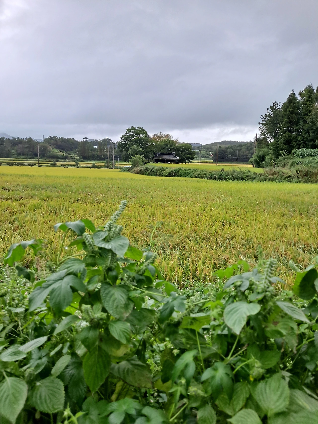 추석날 아침, 샘터가 보이는 부엌문을 열어젖히니 보슬비가 내리면서 가을바람이 시원하다. 밥통에 하얀 쌀밥을 안치고 대문을 열고 논둑길로 나섰다. 어제는 넓게 꽃잎을 펼치고 있던 붉은 가을꽃은 또르르 꽃잎을 말고서 비를 맞는다. 가을 태풍을 잘 버텨온 황금빛 가을 나락들이 마을 앞 논마다 가득이다. 길 가에 심긴 단감나무에서 노란빛을 살짝 띤 단감 한 개를 따서 손에 쥐었다. 딱딱하고 매끈한 느낌이 기분 좋다. 시댁에 와서 잠시 아침 산책을 누릴 여유가 있다는 사실에 웃음이 났다.