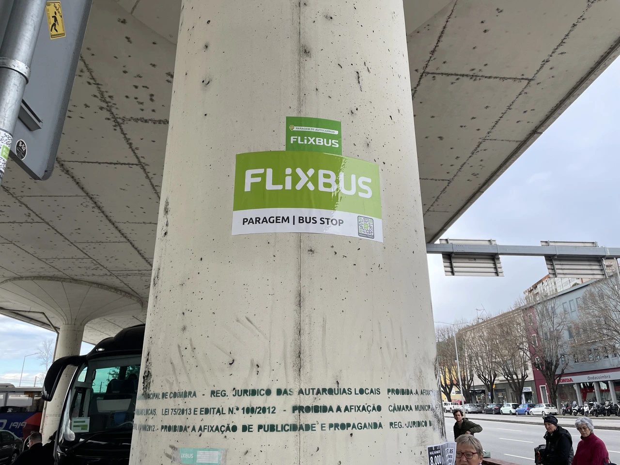 코임브라행 Flixbus (버스회사)의 8:45 출발 버스. 버스 탑승 위치로 확인한 플랫폼 A에서 버스를 기다렸다. 그런데 출발시각에서 오 분이 지났는데도 버스가 나타날 기미를 보이지 않는다. 그러다, 옆에서 직원으로 보이는 젊은 여자가 외국인들에게 영어로 뭐라 안내하는 듯한 소리가 들렸다. 여자에게 다가가, 코임브라행 버스가 언제 오는지 물었다. 플랫폼이 O로 바뀌었으며, 5분에서 7분정도 늦을 예정이란다. 여자의 말대로 플랫폼 O로 이동해서 기다리고 있자니, 과연 버스가 8분 늦게 도착했다. 선방했다!