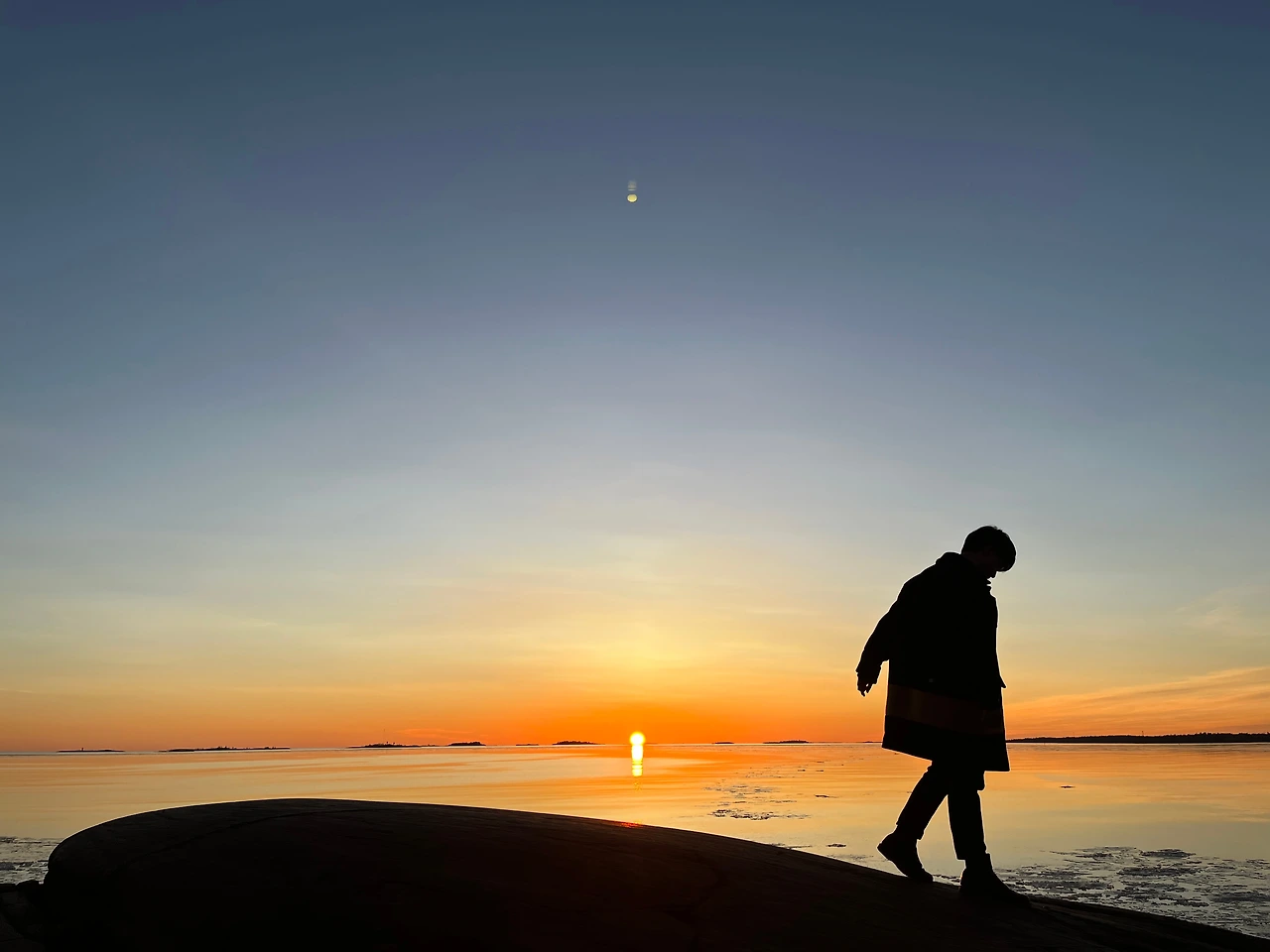 핀란드 여행의 마지막 날. 헬싱키 남쪽에는 수오멘린나라는 작은 섬이 있다. 같은 학과 친구, 극단에 다니는 친구, 나 이렇게 셋이서 마지막을 기념할 일몰을 보러 갔다. 그날은 핀란드에서 본 하늘 중 제일 맑은 날이었다. 해빙을 가르는 배 위에서 하얀 바다와 노란 하늘을 눈에 담았다. 섬에 도착하고 일몰을 볼 수 있는 전망대로 향했다. 인파를 뚫고 해안바위에 앉아 해가 바다에 삼켜지는 걸 본다. 세 명 모두 아무 말 없이 그 광경을 지켜봤다. 그리고 누군가 말했다.