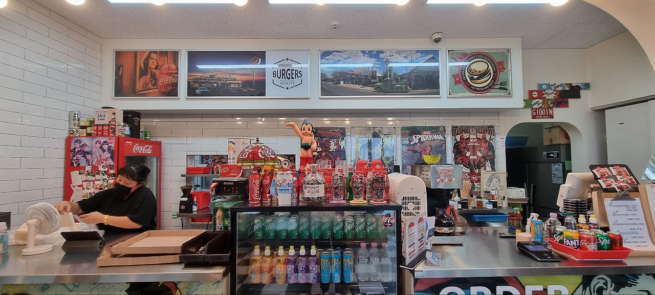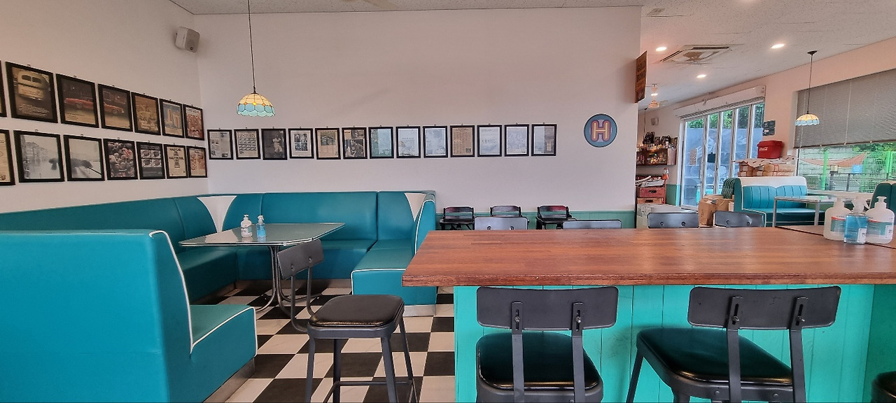 약간 경사진 땅에 강화 앞바다를 바라보며 서 있는 식당은 2층에 자리하고 있어서 식당에서 바라보는 바다 경치가 시원했다. 식당 외관과 실내 디자인도 버거와 잘 어울리게 이국적으로 디자인되어 있었다. 식당 내부의 색상과 테이블, 의자, 인테리어 소품이나 사진들도 미국 서부 식당에서나 봄직한 것들이어서 왠지 버거 맛에 대한 기대가 더 커졌다.