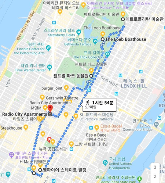 맨해튼을 관광하려면 센트럴 파크를 경유하는 것이 좋다. 센트럴 파크 주변에는 메트로폴리탄 미술관, 뉴욕 자연사 박물관, 뉴욕 구겐하임 미술관, 프릭 컬렉션, 뉴욕 링컨 센터, 메트로폴리탄 오페라 극장 등 유명 미술관과 박물관, 극장 등이 있다. 박물관이나 극장에 가기 전 샌드위치나 샐러드를 사서 센트럴 파크에서 소풍을 즐기는 것은 뉴욕의 낭만을 즐기는 최고의 방법이다. 느릿한 걸음으로 공원의 이곳저곳을 여유 있게 산책하다가 벤치에 앉아 준비해 온 샌드위치나 샐러드를 먹으며 투명한 햇살과 바람을 즐긴다면 이미 진정한 뉴요커가 된 것이다. 아이와 함께 공놀이하는 부부, 반려견과 함께 산책하는 사람, 웨딩 촬영을 하는 예비부부, 조깅하는 그룹, 멋진 포즈로 셀카를 찍는 여행객, 벤치에 앉아 책을 읽는 사람, 서로 얼굴을 마주 보며 행복한 미소를 짓고 있는 연인, 그리고 공원의 키 큰 나무들, 햇살과 산들바람에 흔들리면 빛나는 나뭇잎들, 벤치에 앉아 이 모든 것들을 보고 있노라면 마치 영화의 한 장면에 들어와 있는 듯한 착각이 든다.