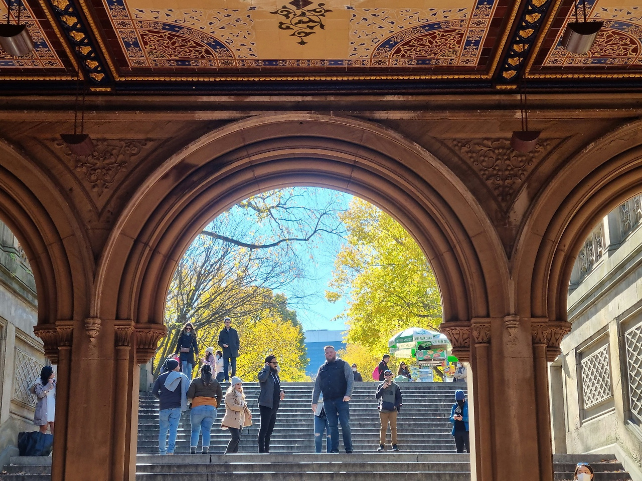 센트럴 파크 중심부에는 사계절 아름다운 모습으로 관광객을 사로잡는 베데스다 테라스와 분수가 있다. 베데스다 분수는 1842년 뉴욕 시가 상수도관 개설을 기념하기 위해 만들었는데 성서에 등장하는 예루살렘의 베데스다 연못을 본떠 만들었다. 분수 주변에는 센트럴 파크의 산책로와 호수가 내려다 보이는 베데스다 테라스가 있는데, 이곳에서 내려다보는 분수와 자연의 아름다운 조화가 일품이다. 베데스다 테라스 아래는 클래식하게 단장되어 마치 유럽 어느 아름다운 궁전에 들어와 있는 듯한 착각을 불러일으키게 한다. 베데스다 분수와 테라스 주변에는 이벤트를 하는 아티스트와 웨딩 촬영을 하는 예비부부, 댄스파티를 하는 사람들과 이를 지켜보는 관광객들로 늘 붐빈다.
