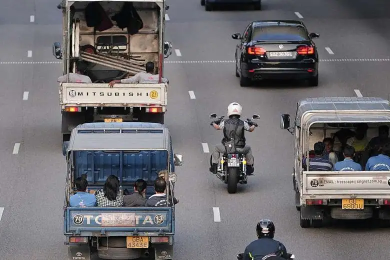 싱가포르 거리에서 흔히 볼 수 있는 ‘사람을 실은 트럭’은 이주 노동자들의 일상적인 통근 수단이다. 2023년 기준, 하루 평균 약 15만 명의 이주 노동자가 트럭을 통해 출퇴근하는 것으로 추정된다.