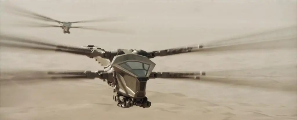 두 번째는 잠자리를 아주 똑닮은 헬리콥터. 커다란 잠자리눈에 잠자리 날개를 단 헬리콥터가 파다다닥 날라다니는게 너무 우스꽝스러워서 영화에 집중하지 못 할 정도였다. (날개를 접고 급하강할 때는 좀 멋있긴 했지만.)