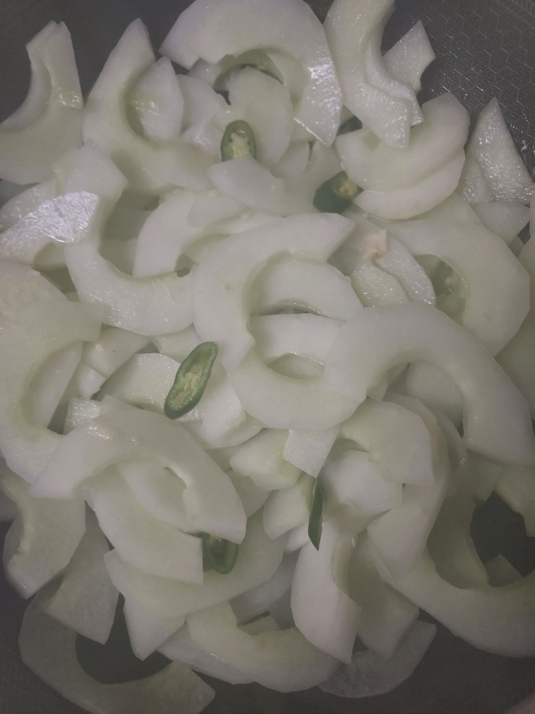 팔뚝만 한 노각을 껍질을 벗겨 반으로 가른 뒤 할머니가 하셨던 것처럼 숟가락을 들고 씨를 벅벅 긁어내면 두 개의 돛단배가 생기는데 그날의 기분에 따라 사진처럼 좁게 썰기도 하고 길게 어슷 썰기도 한 다음 식용유를 두르고 노각을 볶다가 소금을 친 다음 파나 마늘을 넣고 익혀주면 노각 볶음이 완성이다.