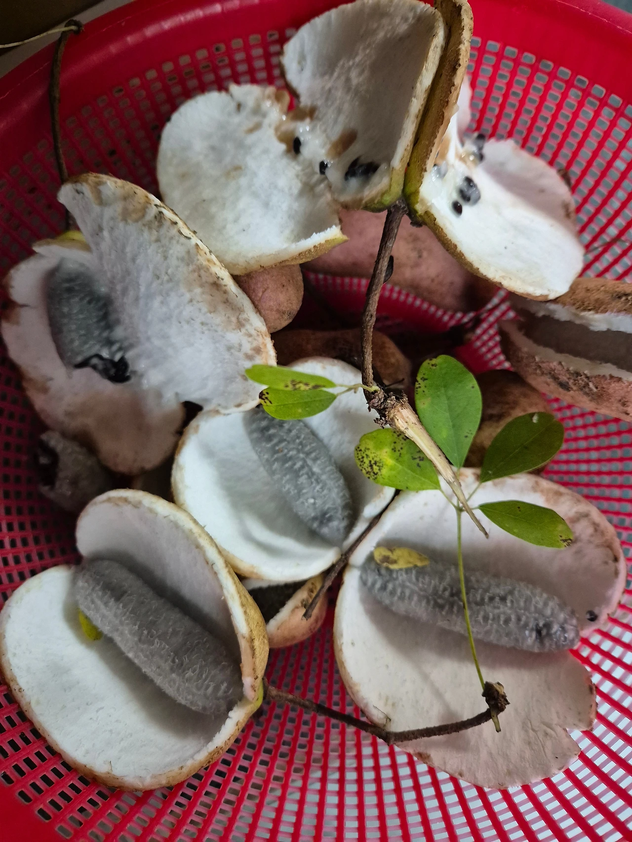 아부지를 대신해 버섯을 데치는데 비바람 때문인지 생각보다 시간이 더뎠지만 꽃향기도 아닌 것이 익숙한 버섯향도 아닌 것이 바람이 불 때마다 전해지는 향긋한 향에 기분이 좋았다. 그리고 할머니처럼 아부지도 덤으로 으름을 주셨는데 으름씨가 꽤 쓴맛이 난다는 사실을 이번에 처음 알았다. 전에는 다 삼키거나 뱉었는데 무슨 생각으로 씨를 씹었던 걸까?