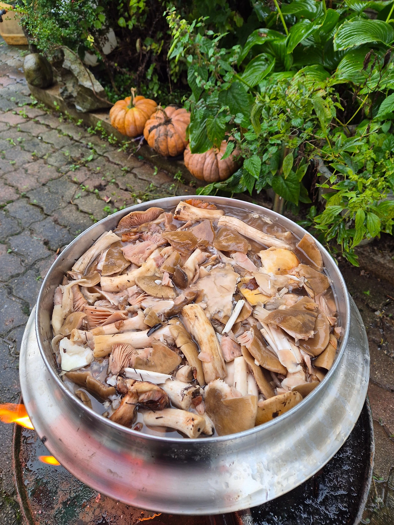 "가지 말긴. 그래서 송이도 따고 잡버섯도 이렇게 많이 땄잖아. 재미로 따는 기지. 니들도 찌개 끼리 묵고"