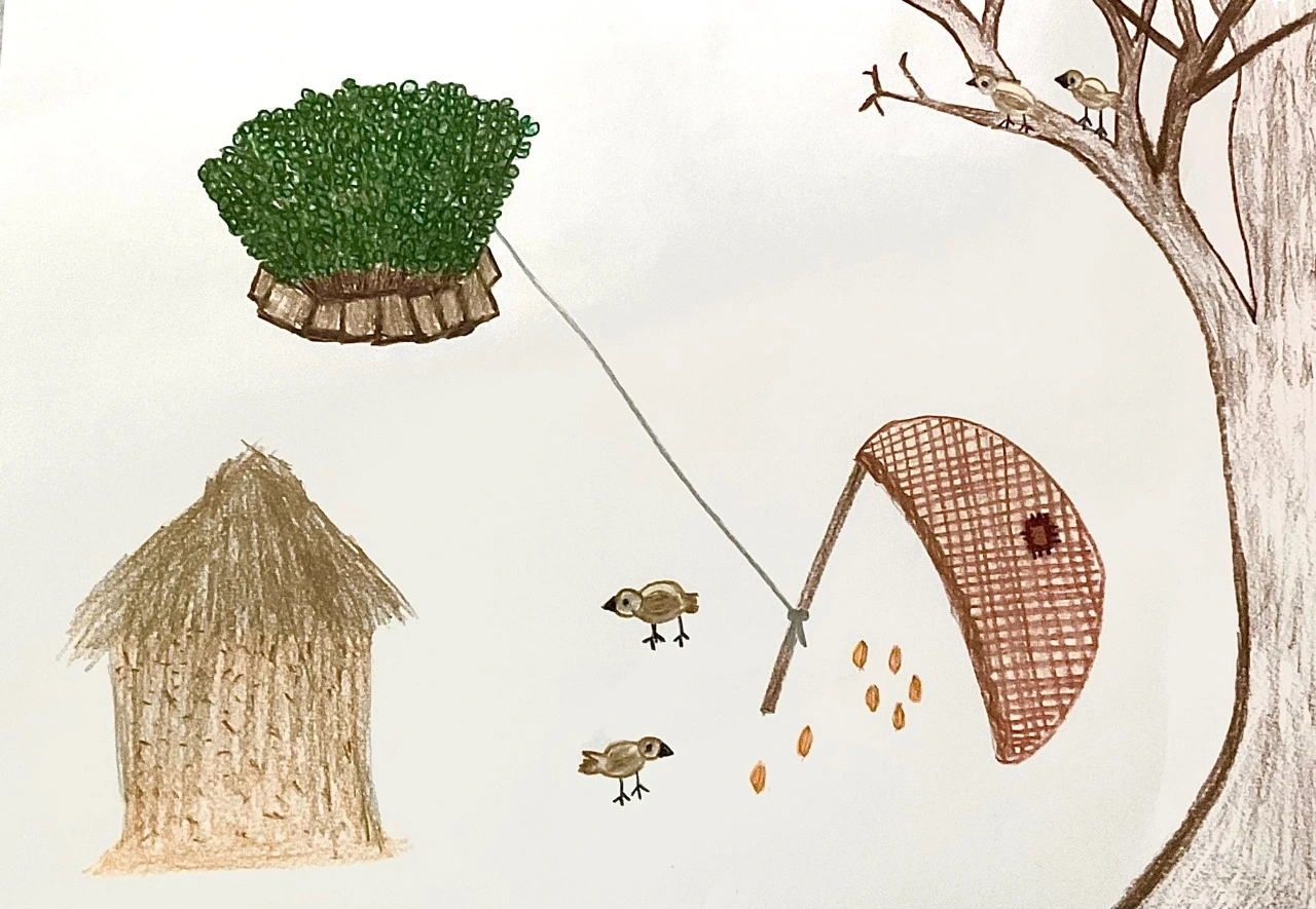 어서어서 오세요다음날 아침 옆집 마당에 나가보니 오빠는 여전히 소쿠리를 세우고 참새를 유인하고 있었다.