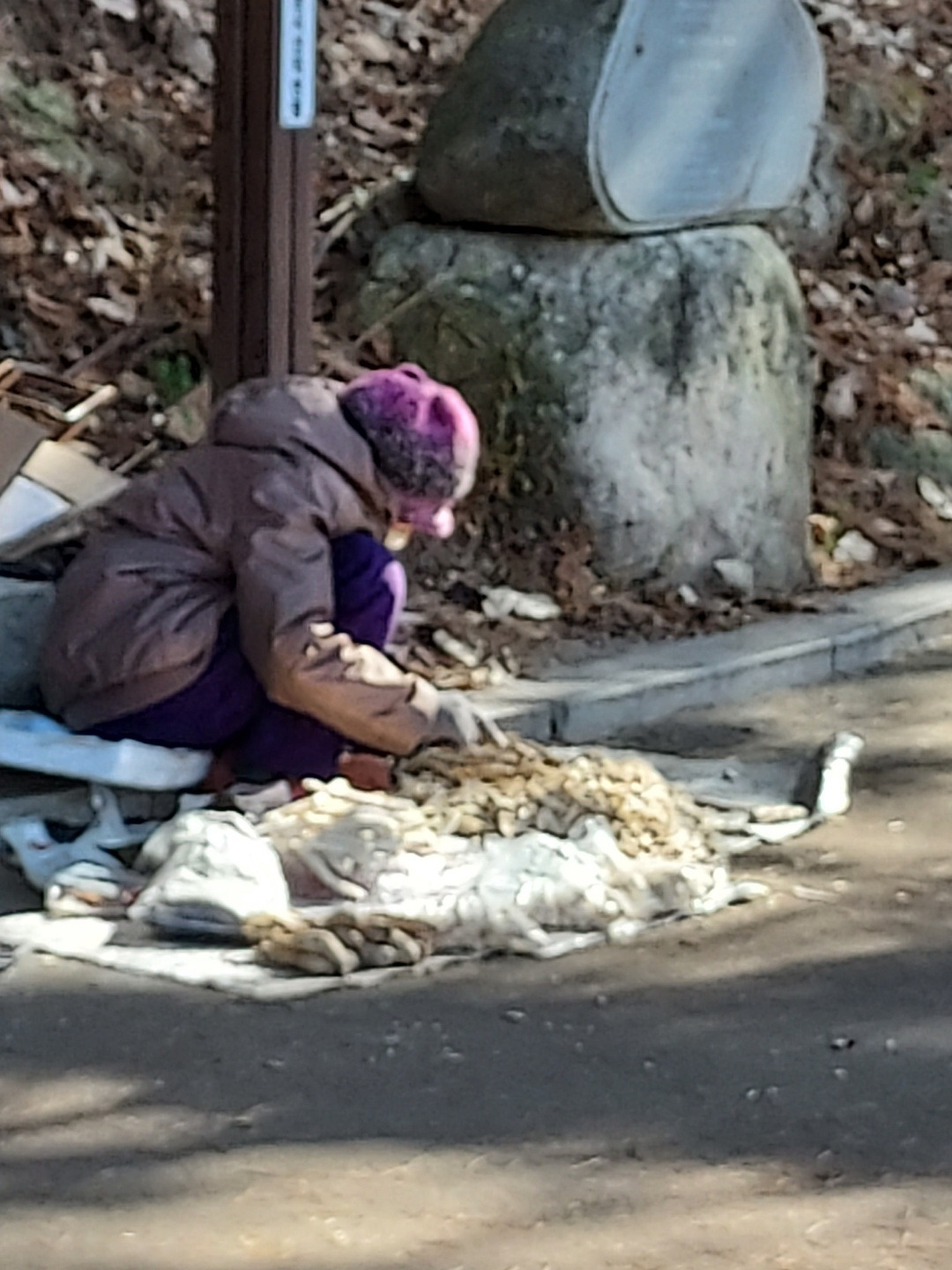 공원 길 입구에 들어서자 바람을 따라온 익숙한 더덕 냄새가 먼저 반겨주었고 나뭇가지들 사이로 간신히 들어오는 겨울 햇살을 빵모자 정수리에 담아 삼삼오오 모여 더덕을 까고 계신 할머니들 모습이 크게 들어왔다. 수북하게 쌓인 더덕 껍질들을 보면서 얼마나 오랜 시간 앉아 계셨을는지 짐작이 갔고 잔뜩 구부러진 할머니 허리와 무릎 사이로 잠수해 버릴 것 같이 숙여진 할머니 고개를 보면서 어린날부터 내가 크던 그 긴긴 시간 동안 늘 마당 한구석 고정석에 앉아 부지런히 손을 움직이시던 우리 할머니 모습을 보는 것 같아 코끝이 시큰해졌다.