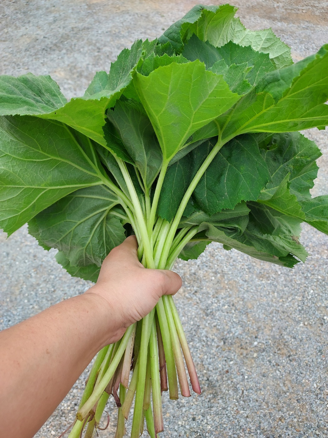 "머위가 많이 컸네. 맛있게 무쳐줘"