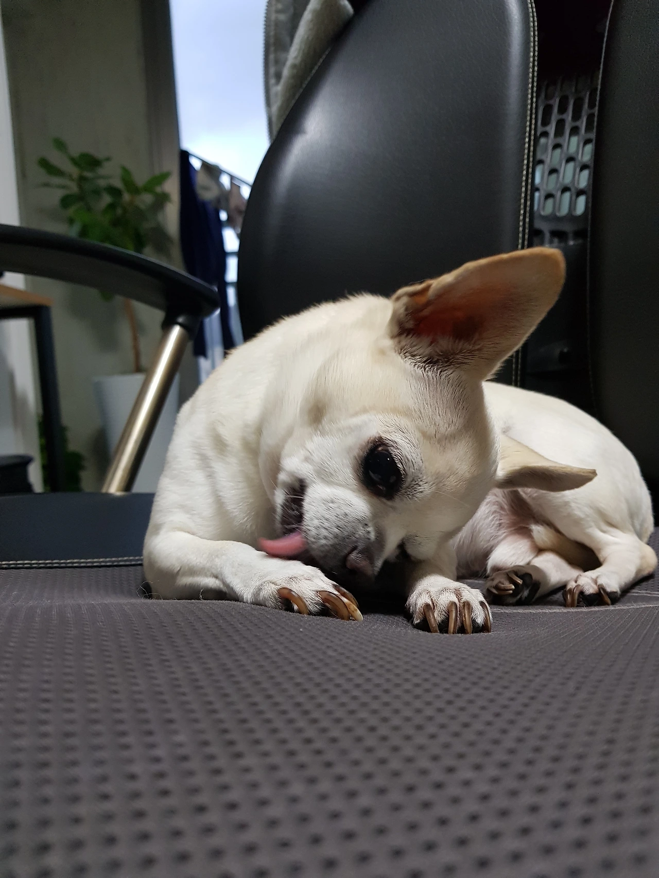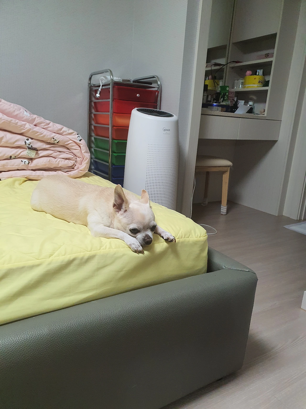 아차차 내 발 옆에서 잠을 청하던 녀석은 내 팔 쪽으로 옮겨와 선수를 치며 짖는다.