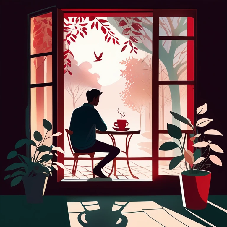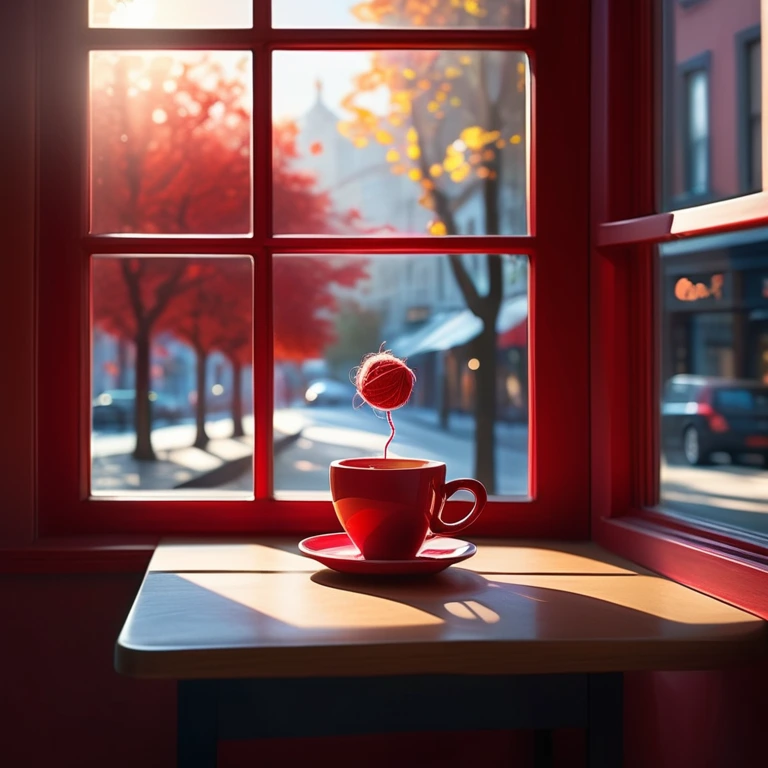 붉은 컵 속 커피는 그의 마음처럼 은은하게 일렁였다.