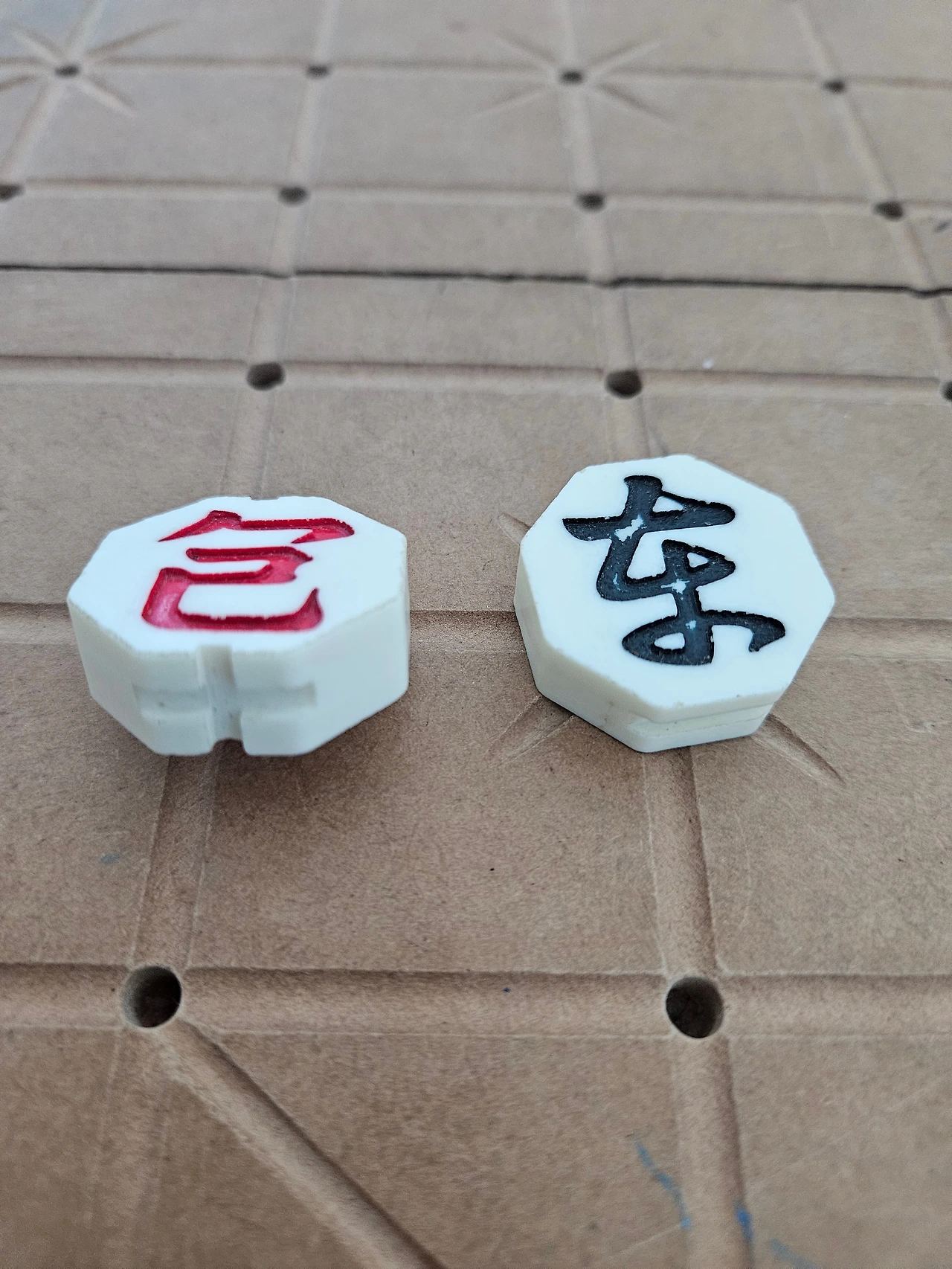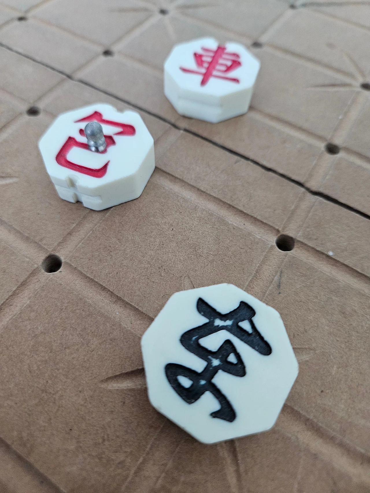 손으로 훑어가며 상대와 나의 수를 봐야 하기 때문에 말의 아래쪽에는 돌기가 있어 점형 구멍에 끼우는 방식으로 제작되었다.