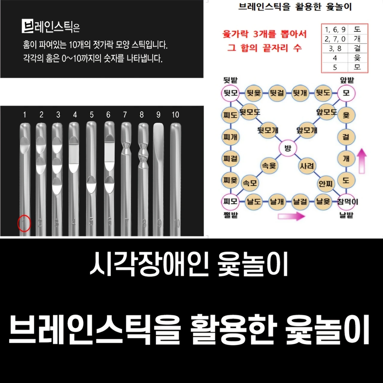 경상북도 시각장애인 복지관에서 만든 시각장애인용 윷놀이판으로 점자와 돌기가 있어서 손으로 만져서 알 수 있도록 제작되었다.