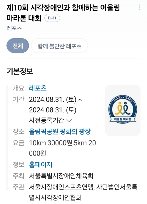 2024년 8월 31일, 시각장애인 마라톤 대회가 열린다.