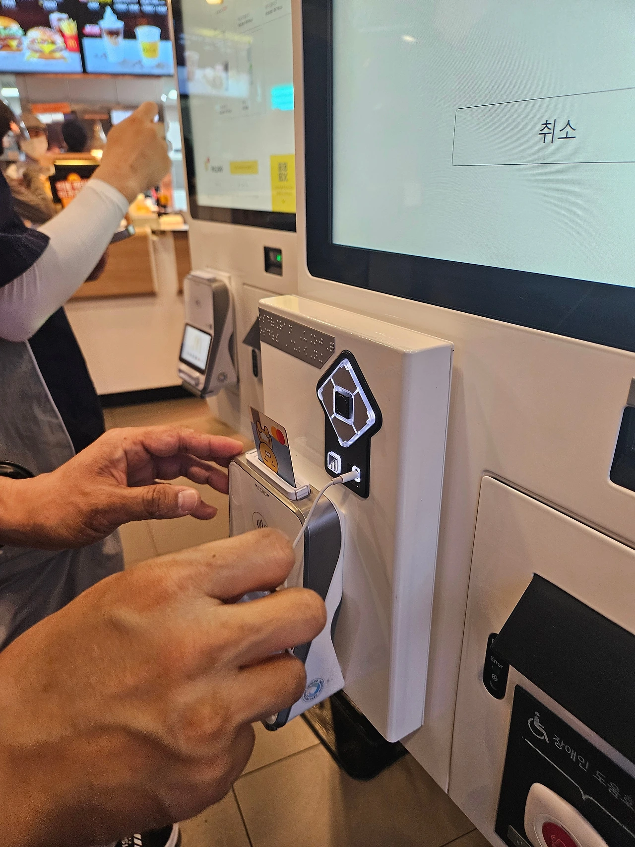 두대의 키오스크 중 한 대에 '장애인 이용 배려 키오스크'라며 떡 하니 자리를 내어준다.